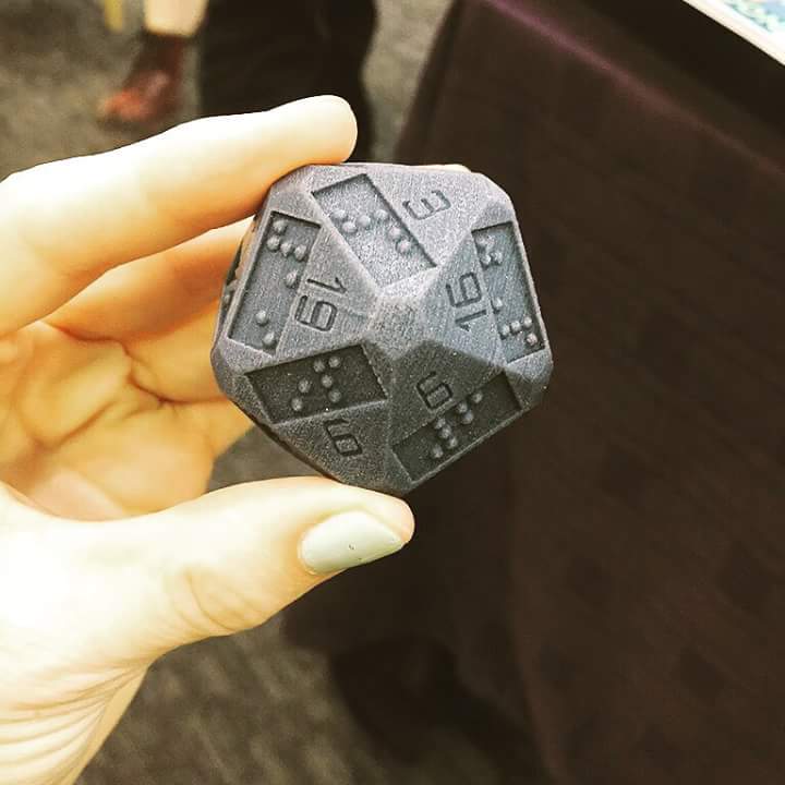 O seu amigo portador de deficiência visual agora pode jogar Dungeons & Dragons (D&D). Um fâ desconhecido de RPG criou esse dado de 20 faces usado no jogo (D20). O icosaedro possui a numeração acompanhada de tradução em Braille.